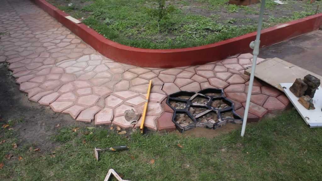 В зависимости от формы и размеров дорожек, дачник должен заготовить необходимое количество расходных материалов, а затем выложить их прямо на верхний слой почвы.