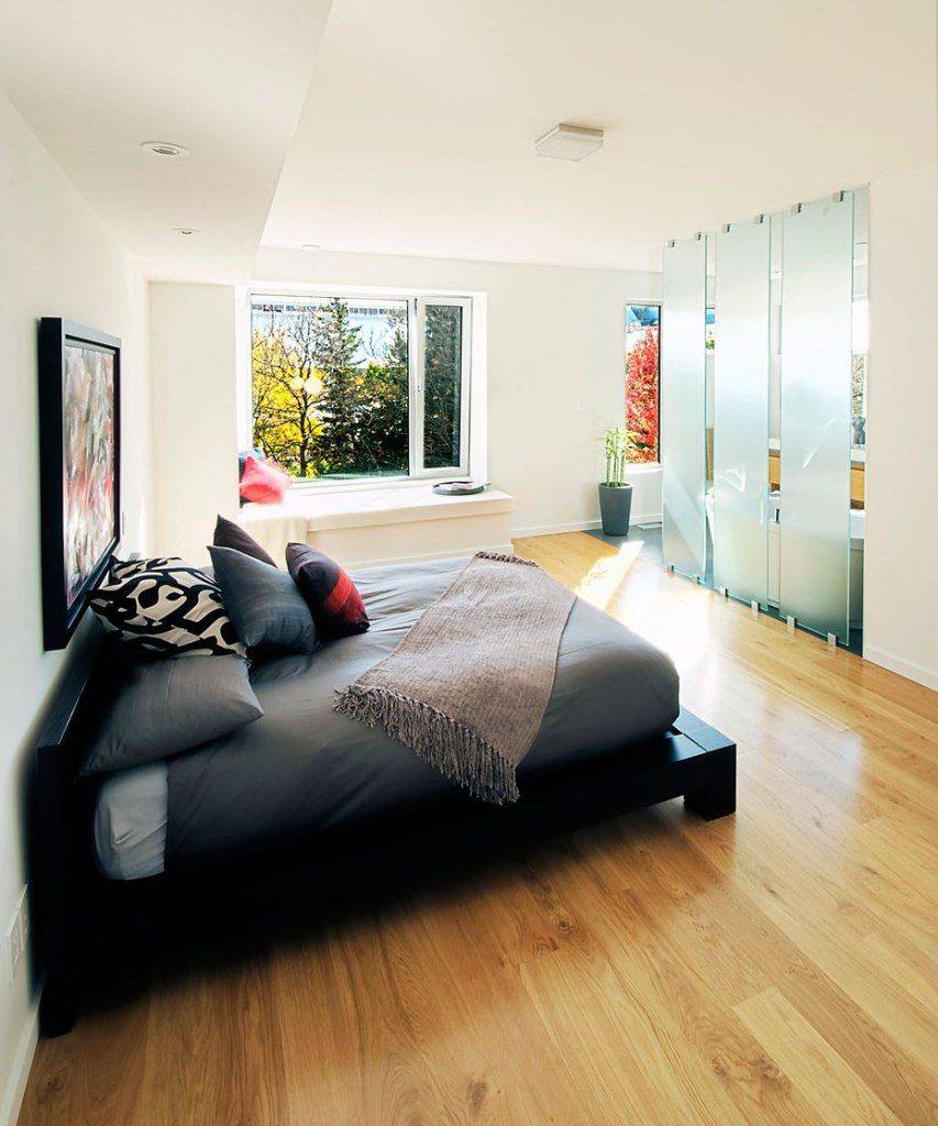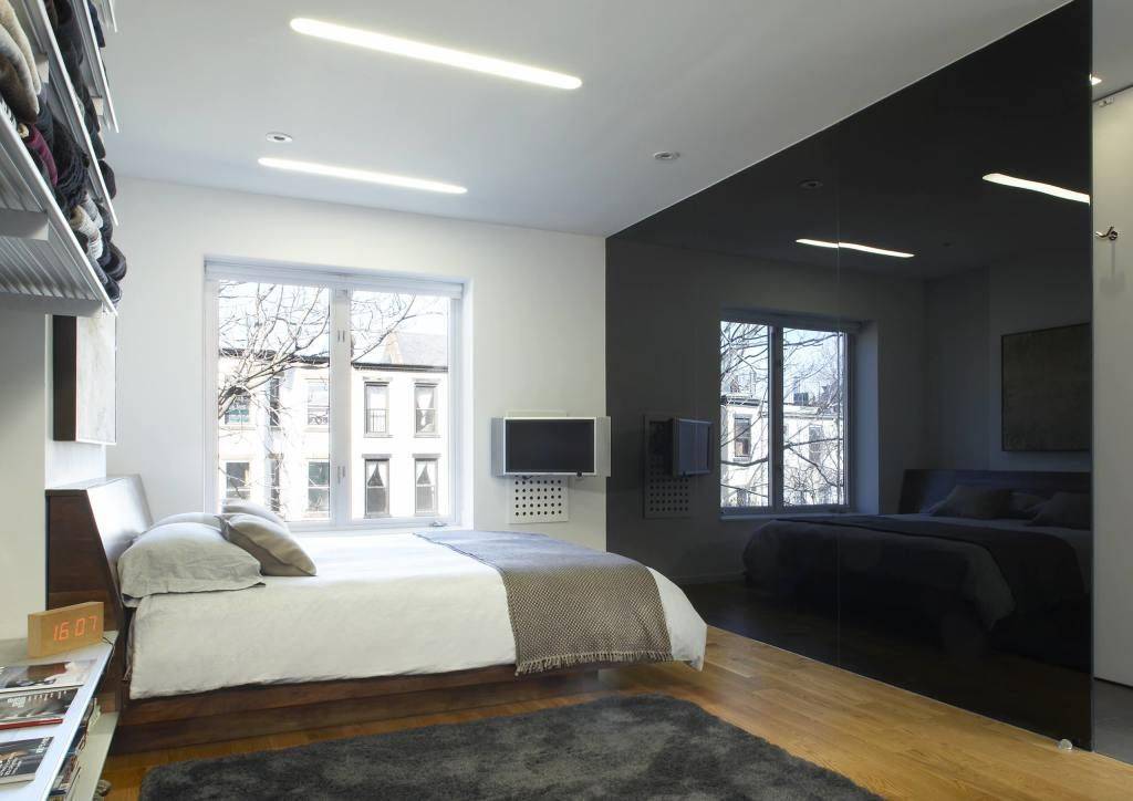 - Несмотря на то, что перегородки разделяют пространство комнаты на несколько более мелких зон, выбрав зеркальный или стеклянный вариант барьера, можно визуально увеличить помещение.