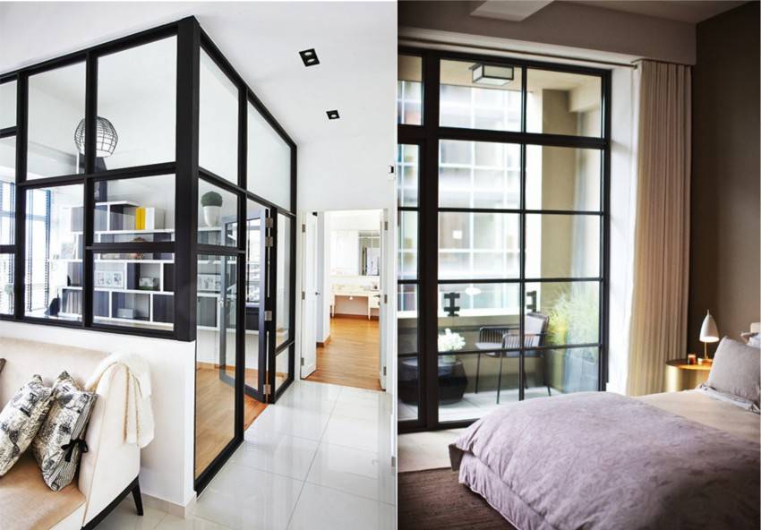Зачастую такой тип перегородок используется в небольших квартирах или квартирах-студиях. С помощью стекла можно не только разделить кухню и другие комнаты, но и разделить помещение на «дневную» и «ночную» зоны. В некоторых современных квартирах такие перегородки используют даже для отделения санузла от других комнат, однако не всем такой вариант придется по душе.
