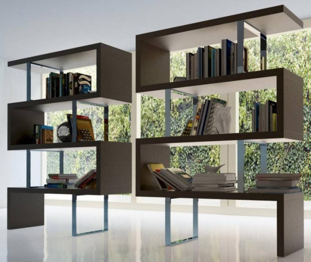 Перегородку можно сделать в виде полок, она будет служить украшением интерьера и функциональной мебелью