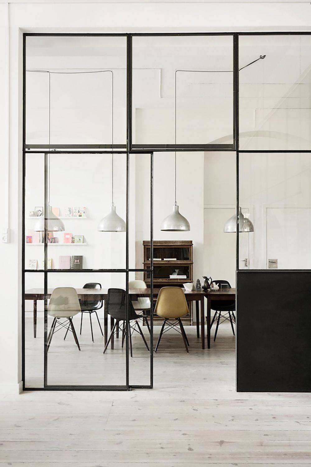 Стеклянная перегородка не загромождает пространство, в то же время разделяя помещение на функциональные зоны