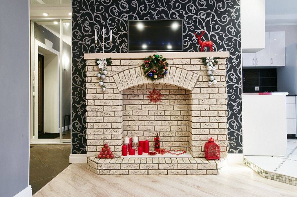 Но не стоит забывать и о том, что помимо такого декорирования камина необходимо еще оформить и прилегающую к нему стену.