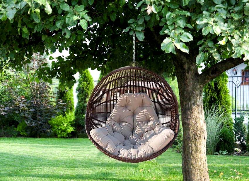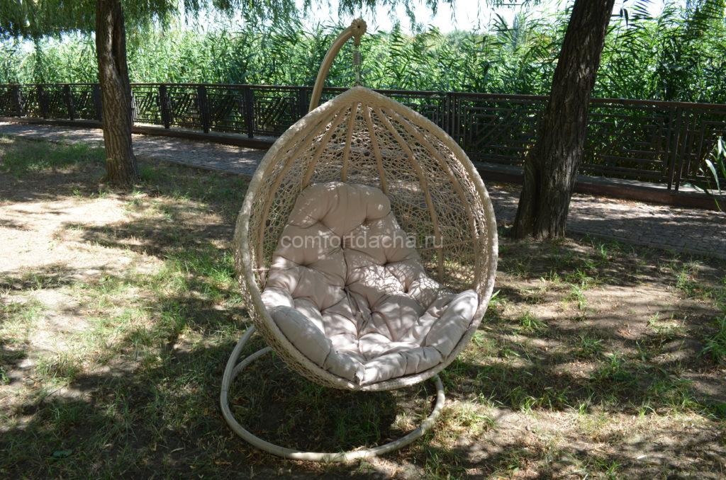 Сейчас мы рассмотрим всевозможные варианты создания удивительной мебели, и первыми в списке станут качели яйцо своими руками. Посмотрите, как эффектно оно смотрится на фотографии.
