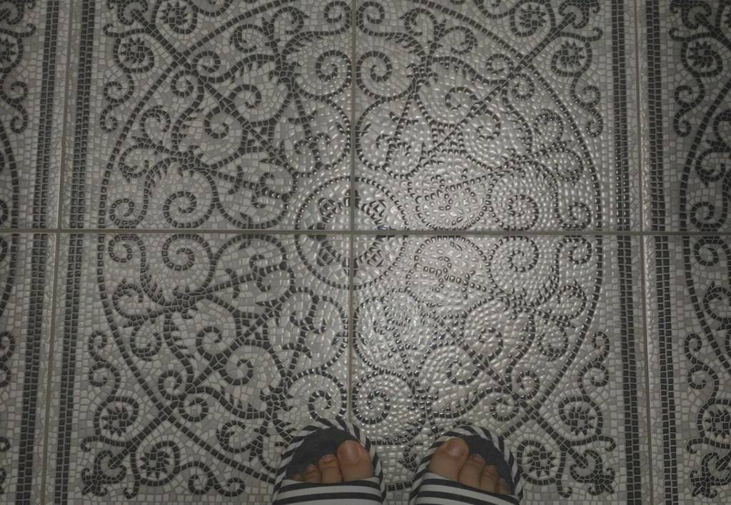 Если общее оформление интерьера в сдержанной цветовой гамме, то пусть пол станет центральным украшением. Орнамент на кафеле будет главным ярким акцентом.