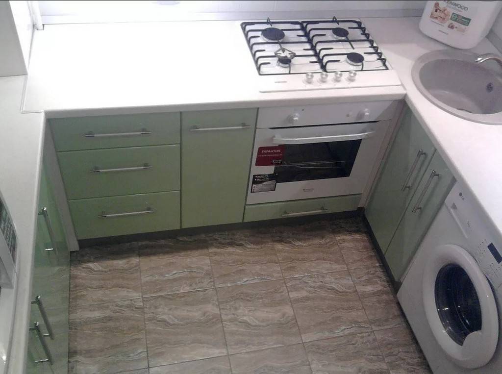 Для узкой кухни подойдет прямоугольная плитка с поперечной выкладкой.