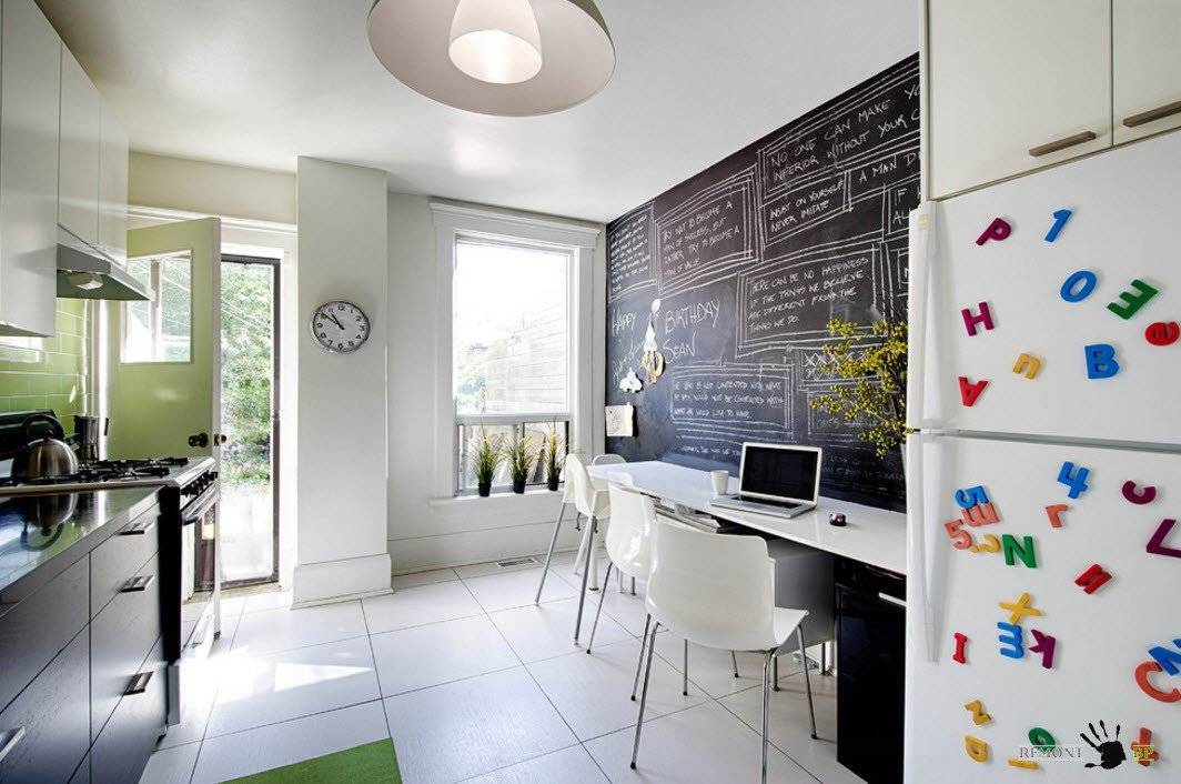 Модным дизайнерским трендом сейчас является комбинированная отделка, разделяющая стены на две части по горизонтали. Плитка пэчворк на кухне не только позволит создать оригинальное оформление стен, но и упростит процесс уборки. Нижняя часть стен, облицованная таким материалом, будет легко очищаться от загрязнений, которых сложно избежать в этом помещении.