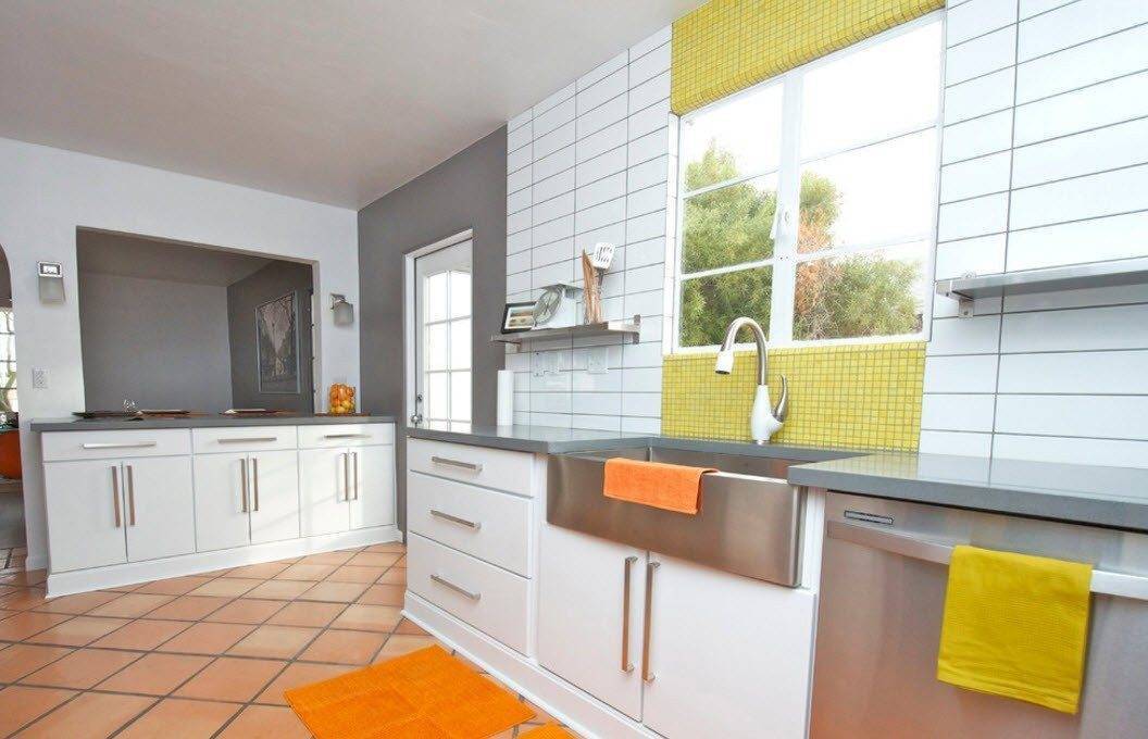 Обычно плиточные покрытия укладываются в рабочей зоне – то есть там, где происходит разделка продуктов и приготовление пищи.