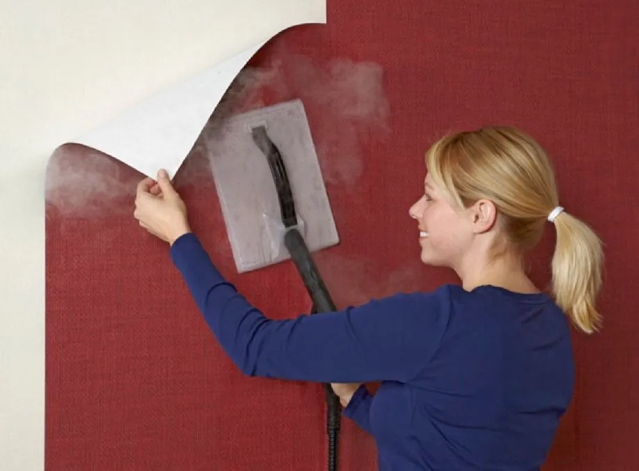 Этот метод подойдет тем, у кого есть парогенератор, отпариватель, на крайний случай — утюг, желательно с функцией отпаривания. Подойдет для бумажных покрытий и некоторых других, кроме виниловых — последние практически не поддаются воздействию пара.