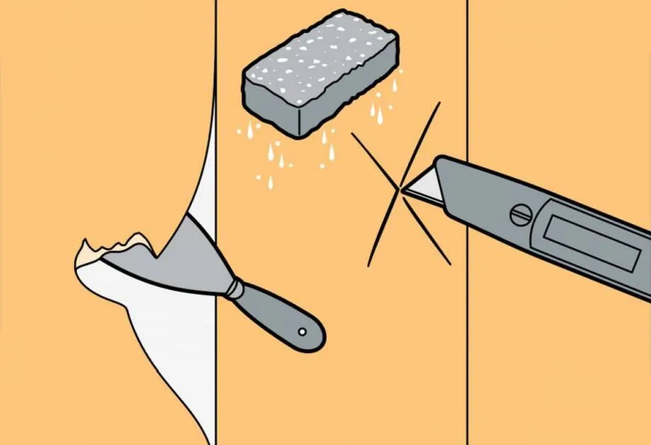 Технология работы простая: нужно обои смочить теплой водой, выдержать некоторое время, чтобы вода размягчила старый клей, и снять при помощи острого шпателя или ножа. При этом нужно соблюдать определенную последовательность и учитывать некоторые нюансы: