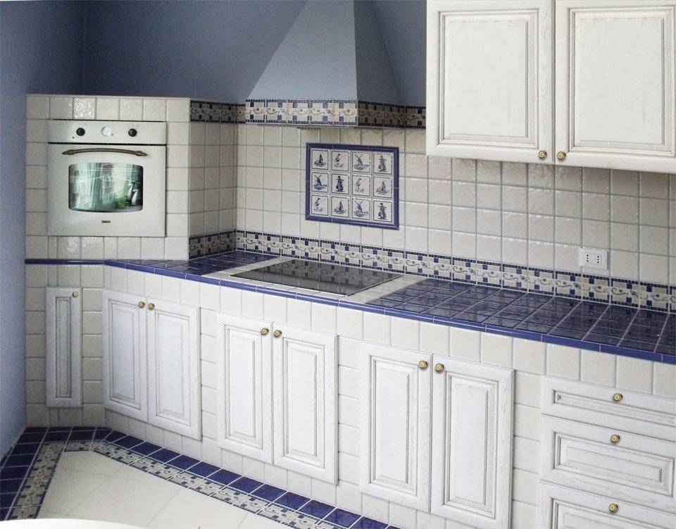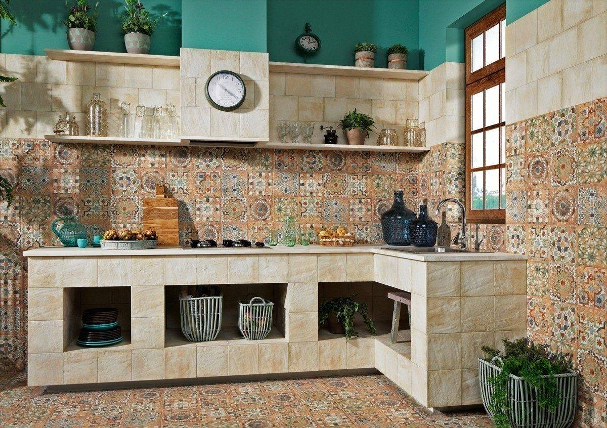 Неровные контуры, имитация глиняной состаренной плитки или камня подходит для гарнитура в стиле кантри и прованс.