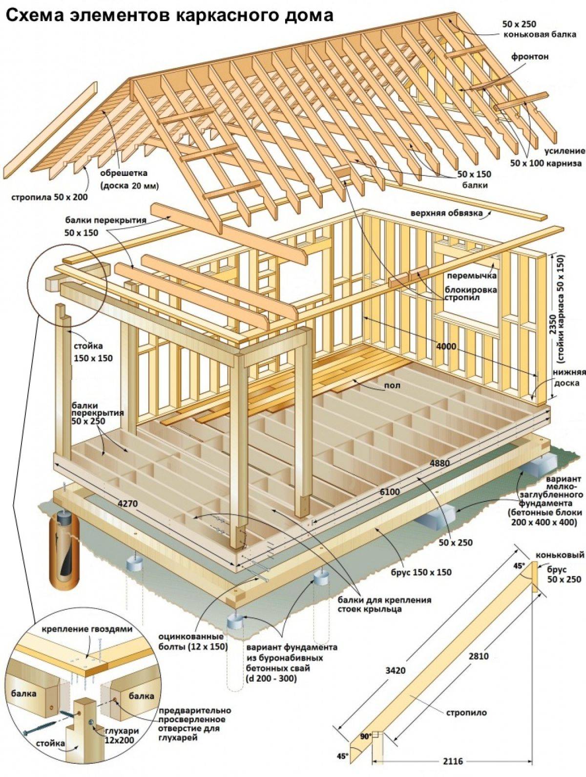Конструкция каркасного дома