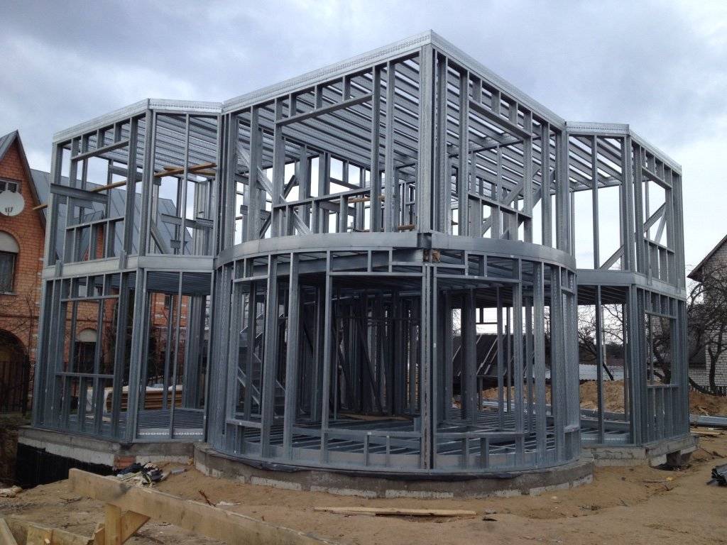 Однако каркас можно построить и из устойчивого к коррозии термопрофиля из металла, что повлечет за собой увеличение сроков службы дома. Отверстия в каркасе уменьшают его вес, а материал изготовления позволяет не бояться процессов гниения и воздействия огня. Однако при несоблюдении технологии строительства возможна так называемая «герметизация», что повлечет за собой потери тепла.