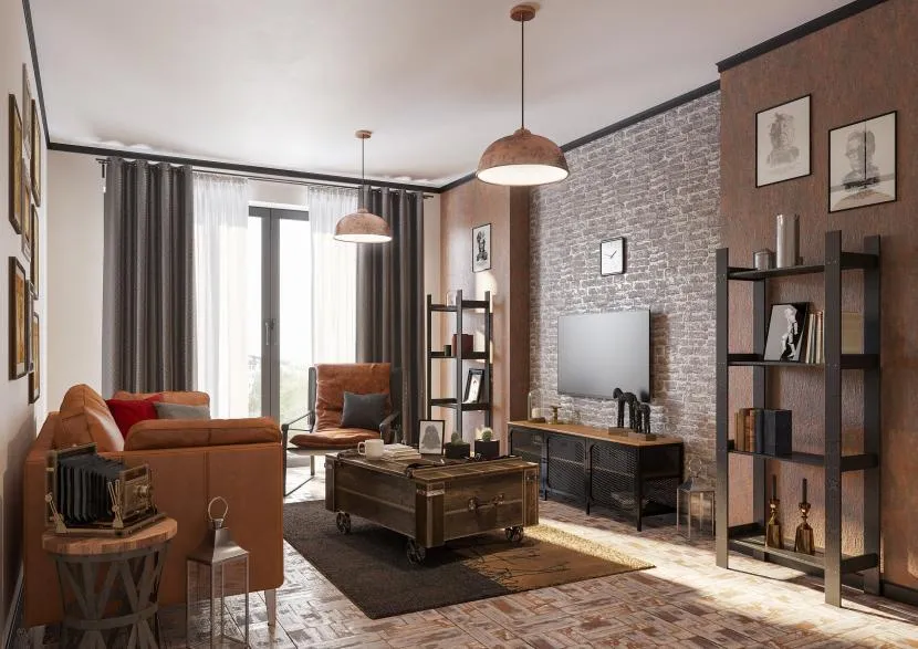 Гостиная с элементами лофтаИсточник cloudinary.com