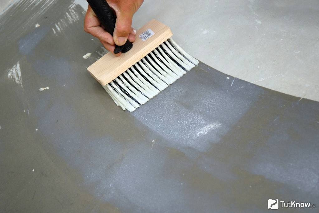 Для бетонных оснований применяют раствор под названием Бетонконтакт. Компонент из мелкодисперсного кварцевого песка в составе Бетонконтакта существенно повышает адгезию бетона.