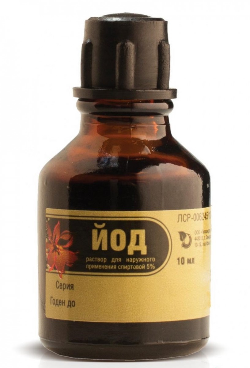 Йод имеет насыщенный коричневый цвет и довольно жидкую консистенцию.