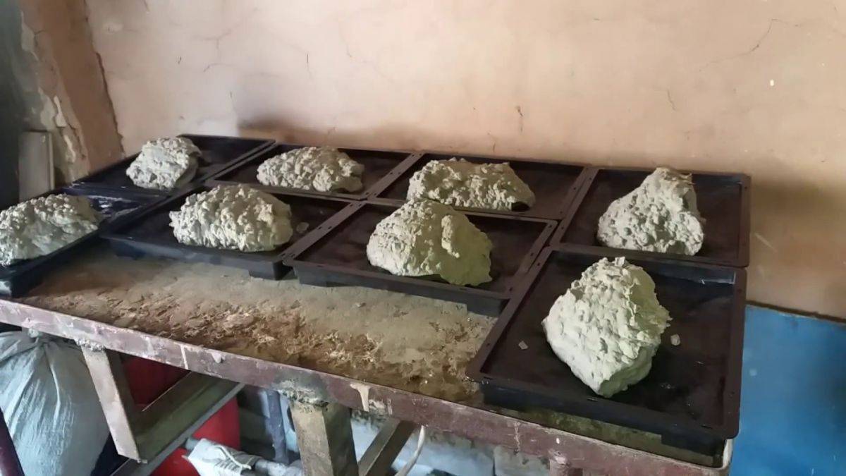 Извлечение камня делают осторожно, и укладывают изделия на стеллажи во влажном и теплом помещении, укрытом от ветра и солнца