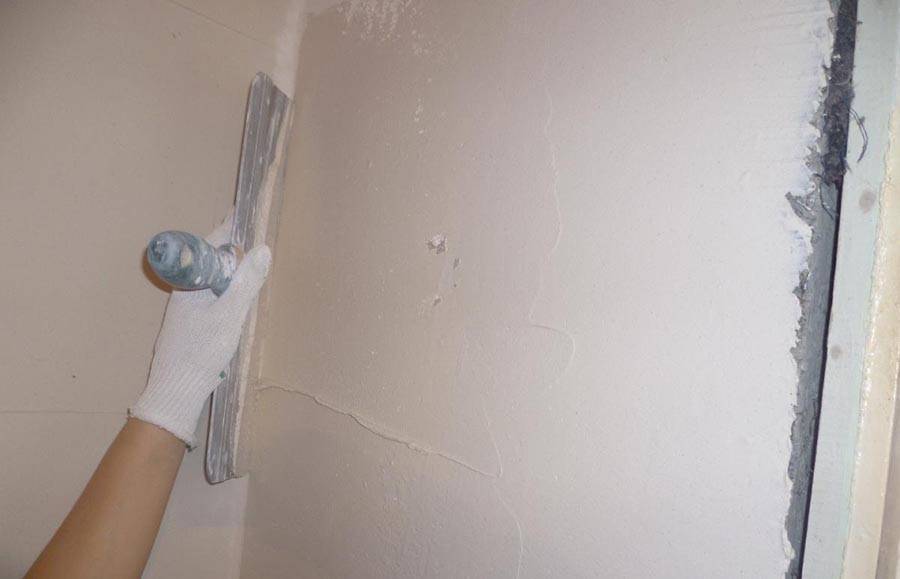 - спустя 5-7 минут, когда штукатурка начнет схватываться на стенах, выполняется затирка. Для этого следует расположить малку плашмя, и, слегка прижимая ее к штукатурке, совершать круговые или возвратно поступательные движения рукой;