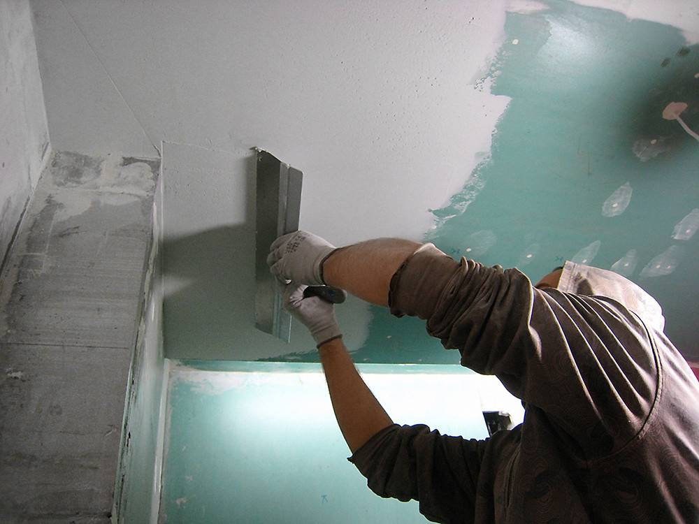 На фото – шпатлевание гипсокартона