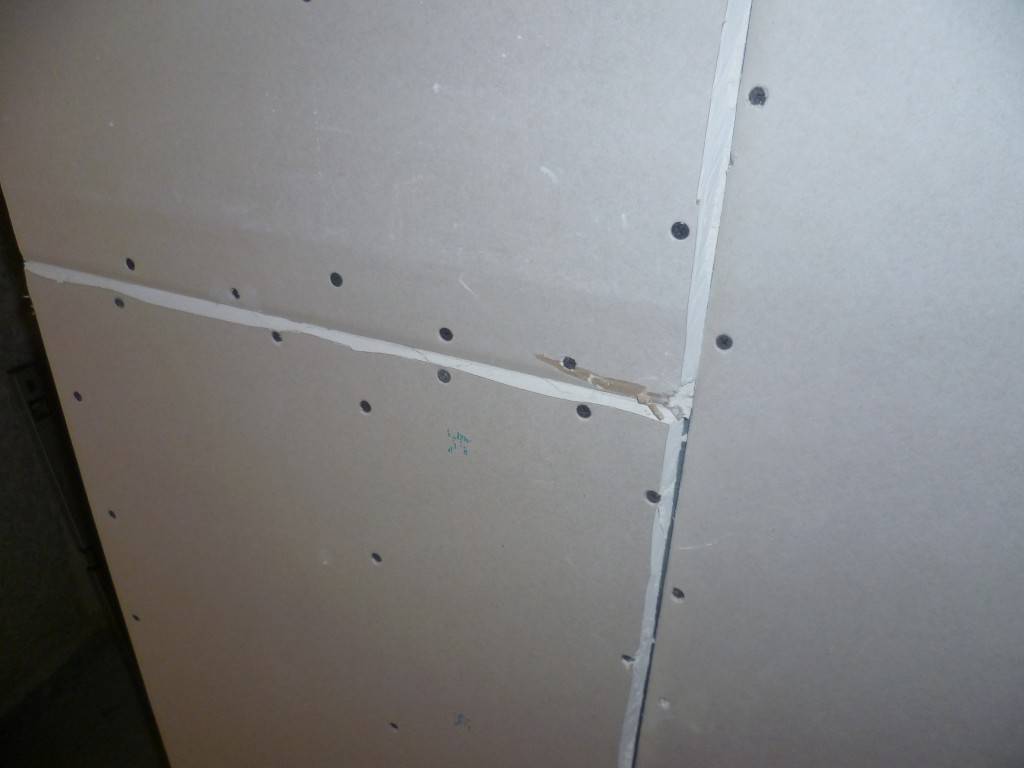 После высыхания заделываются швы и саморезы. Высохшую шпаклевку на стыках зачищают от наплывов и выравнивают.