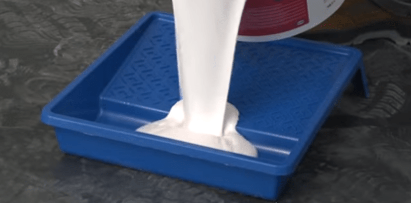 Выбрав водоэмульсионную краску, вы увидите на упаковке, что разбавлять ее не стоит. Если купленный вами продукт уже успел загустеть, то можно слегка разбавить его водой. В противном случае просто перемешайте краску, раскатайте ее валиком по поддону и начинайте красить.