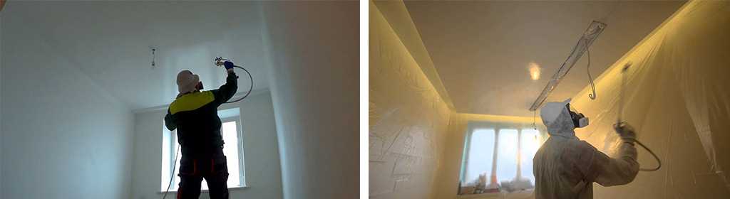 Покраску потолка краскопультом лучше проводить в пустом помещении до покраски стен.