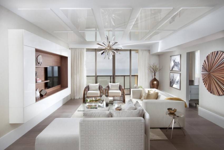 Совет! Поклонникам светлых оттенков в интерьере гостиной, стилисты рекомендуют выбирать для декора светлые отделочные материалы, не имеющие крупного орнамента.