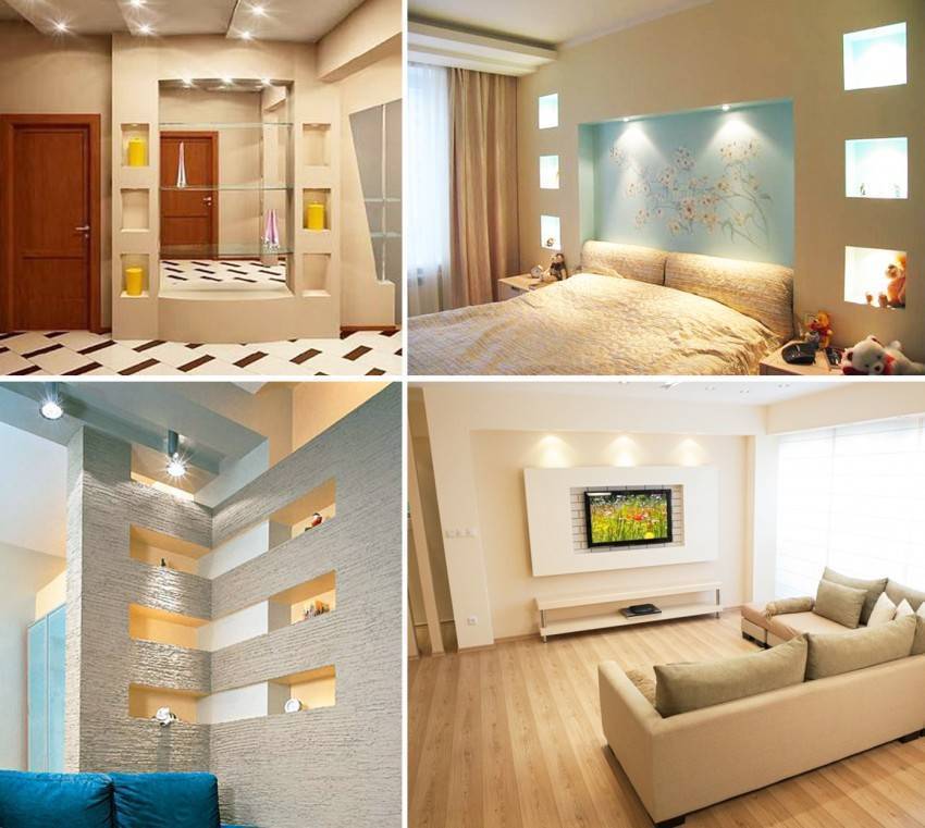 Ниши на стене из гипсокартонаИсточник dekormyhome.ru