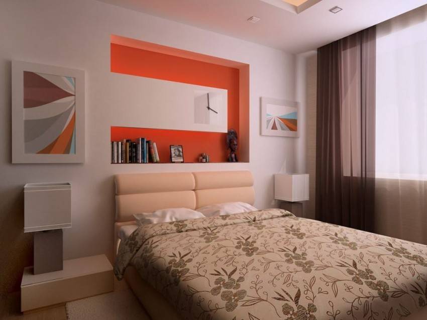 Как оформить нишу, если она неглубокая? Если она настолько узкая, что невозможно вставить полочки, то для оформления поверхности желательно использовать обои или краску. Узкие конструкции над диваном или спальным местом украшают фотографиями, книгами, сувенирами или другим стилизованным декором.