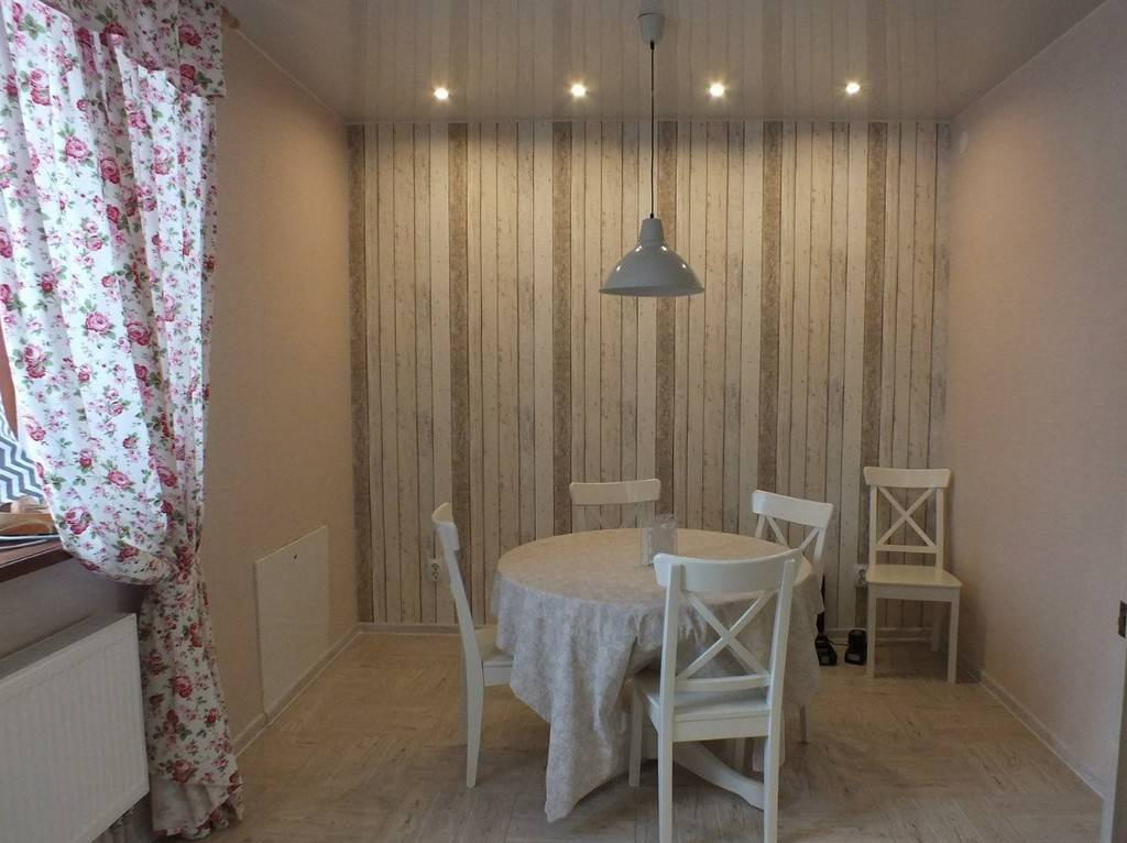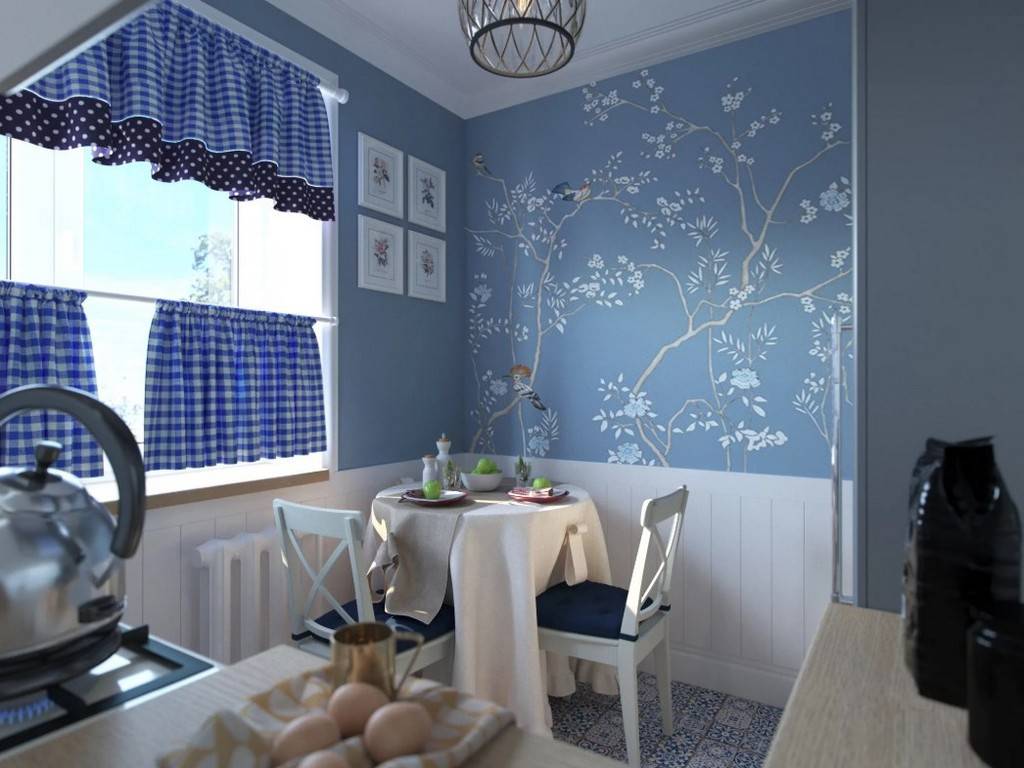 Рисунок и цвет покрытия может зрительно уменьшить или увеличить пространство. Отделка помещения — это фон, на котором мебель должна выглядеть солидно. Есть несколько вариантов поклейки, которые можно применить и к маленькой, и к большой кухне.