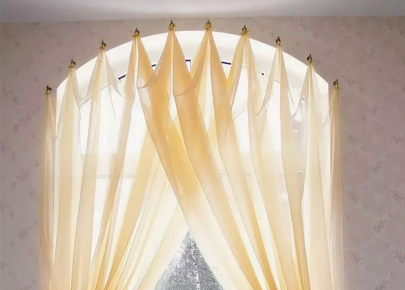 Точечное крепление штор на полукруглой оконной рамеИсточник zen.yandex.ru