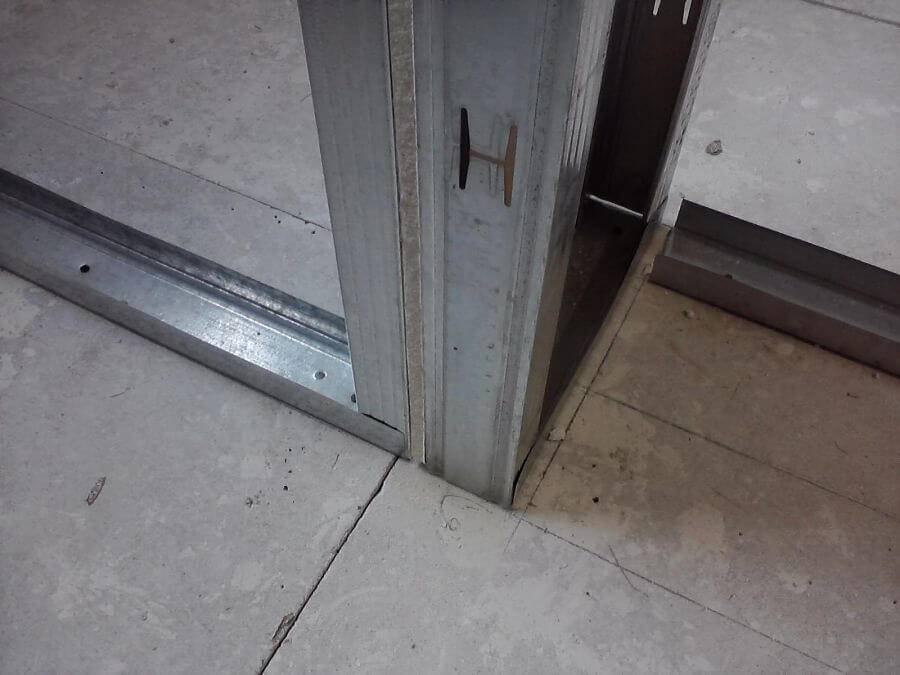 - Установите перемычки над и под проемами, а также на участках стыка листов гипсокартона.