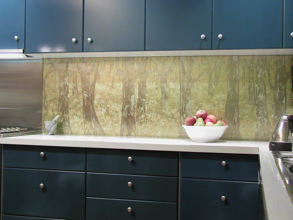 Многие считают это идеальным решением. Установка стеновой панели на кухне не будет дешевой, но стеклянные поверхности отличаются стойкостью перед колебаниями температур, прочностью и долговечностью. Им не страшна влага, а все загрязнения быстро очищаются. Только придется регулярно протирать стены, чтобы не были видны подтеки.