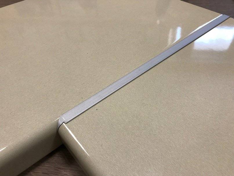 - Теперь смазываем торцы силиконовым герметиком, накладываем алюминиевую планку и ровняем ее заподлицо. Затем нужно закрепить планку маленькими саморезами. Излишки силикона можно вытереть ацетоном.