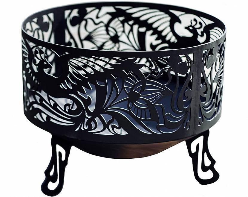 Переносное кострище – компромисс для тех, кто пользуется очагом лишь время от времени и не хочет делать на участке специальную обособленную зону для этого. В продаже имеются готовые модели на любой вкус. Есть среди них универсальные металлические чаши на ножках и оригинальные по исполнению экземпляры. Они легко вписываются в любые стилистические концепции ландшафтного дизайна, прекрасно дополняют их, а иногда становятся акцентным украшением. Плюсы фабричных изделий в том, что они доукомплектовываются крышками, решетками и шампурами.