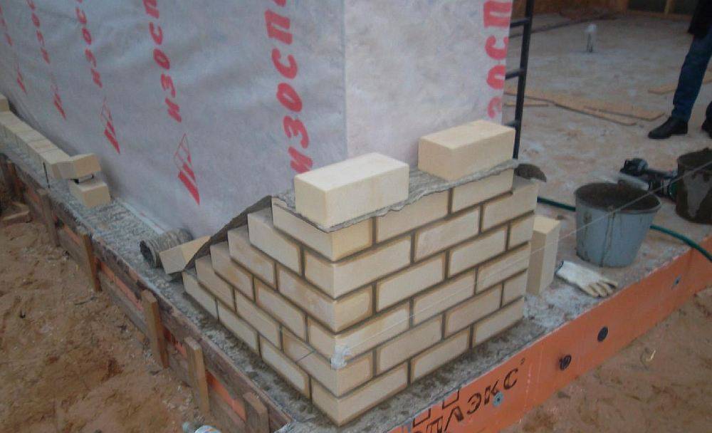 На связующие элементы требуется надевать кольца из резины, называемые слезником. Перед тем как начинать работы, надо также убедиться, что кирпич не имеет дефектов, сколов, трещин, так как в будущем они могут привести к разрушению фасадной отделки. Успешность отделки во многом будет зависеть от этого.