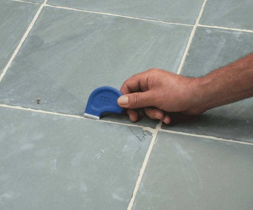 Обычно затирка удаляется довольно легко, сильно надавливать на инструмент не придется. Если швы сильно затвердели и расшиватель не справляется, воспользуйтесь специальным кислотным очистителем. Он размягчит затирку и сделает более мягкой. Вам нужно лишь нанесите очиститель на швы с помощью кисточки, и подождать некоторое время, пока средство впитается, затем убрать старую затирку.