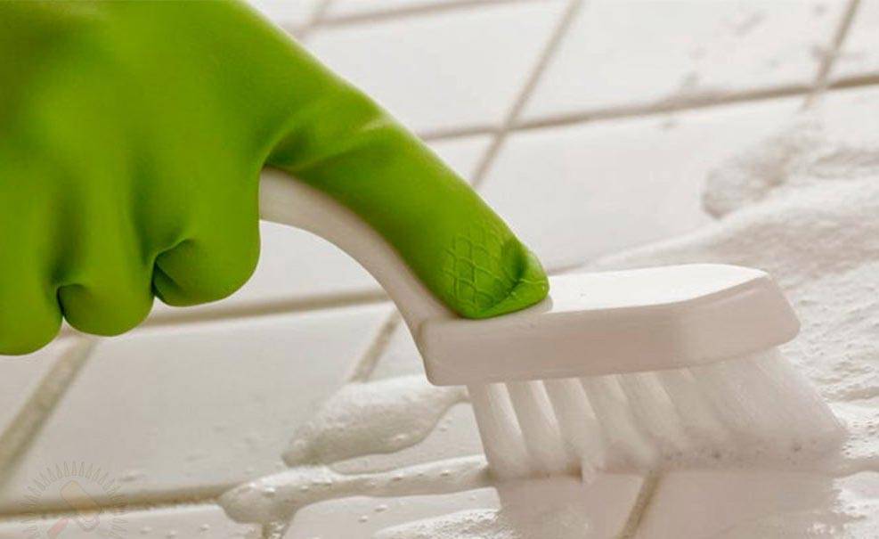 Как известно, на межплиточных швах очень часть собирается известковый или жировой налет. Чтобы удалить первый, потребуется уксусная эссенция, а второй – спирт. Если налет еще не успел застареть, для его удаления может быть достаточно использования жесткой губки с жидкостью для мытья посуды.