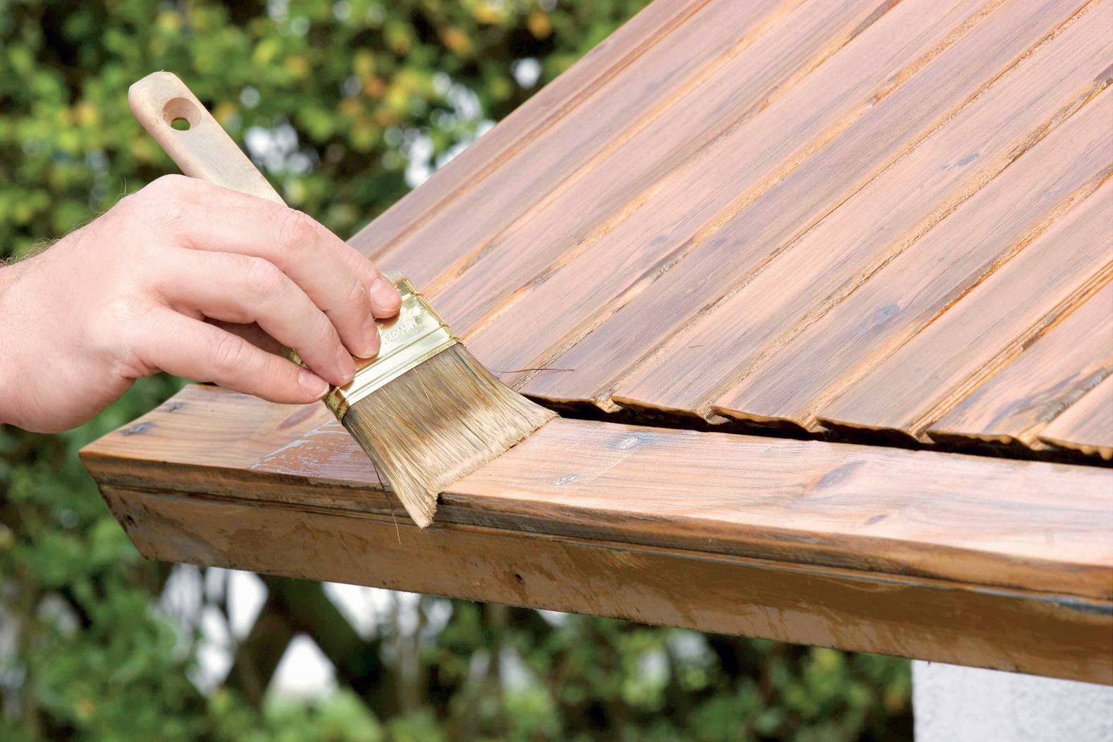 Для обработки наружных поверхностей (фасадов, террас, стропил) необходимо использовать специальные атмосферостойкие синтетические пропитки и краски.