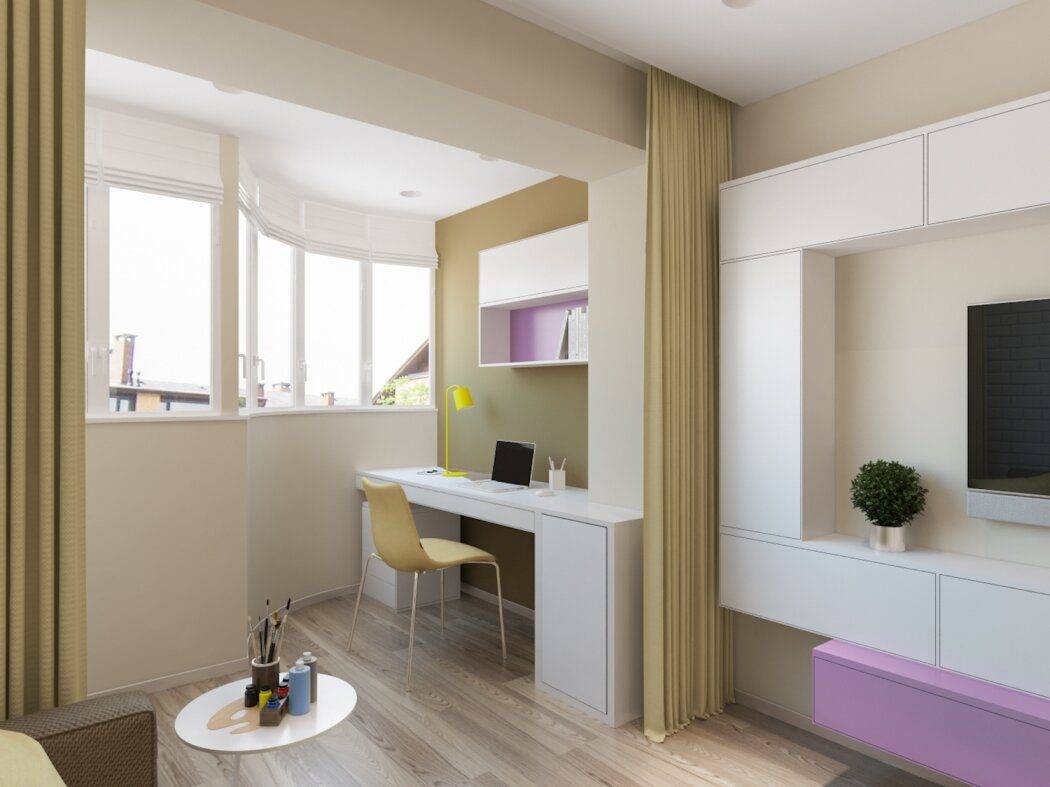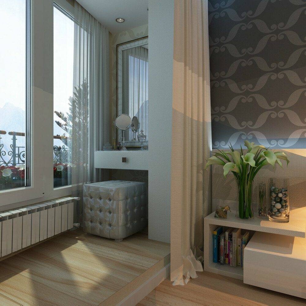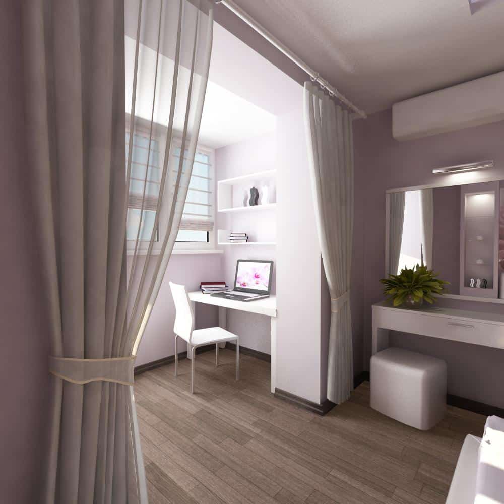 При достаточных размерах лоджии, ее можно превратить в самостоятельное помещение или за счет демонтажа перегородки, совместить с примыкающей комнатой.