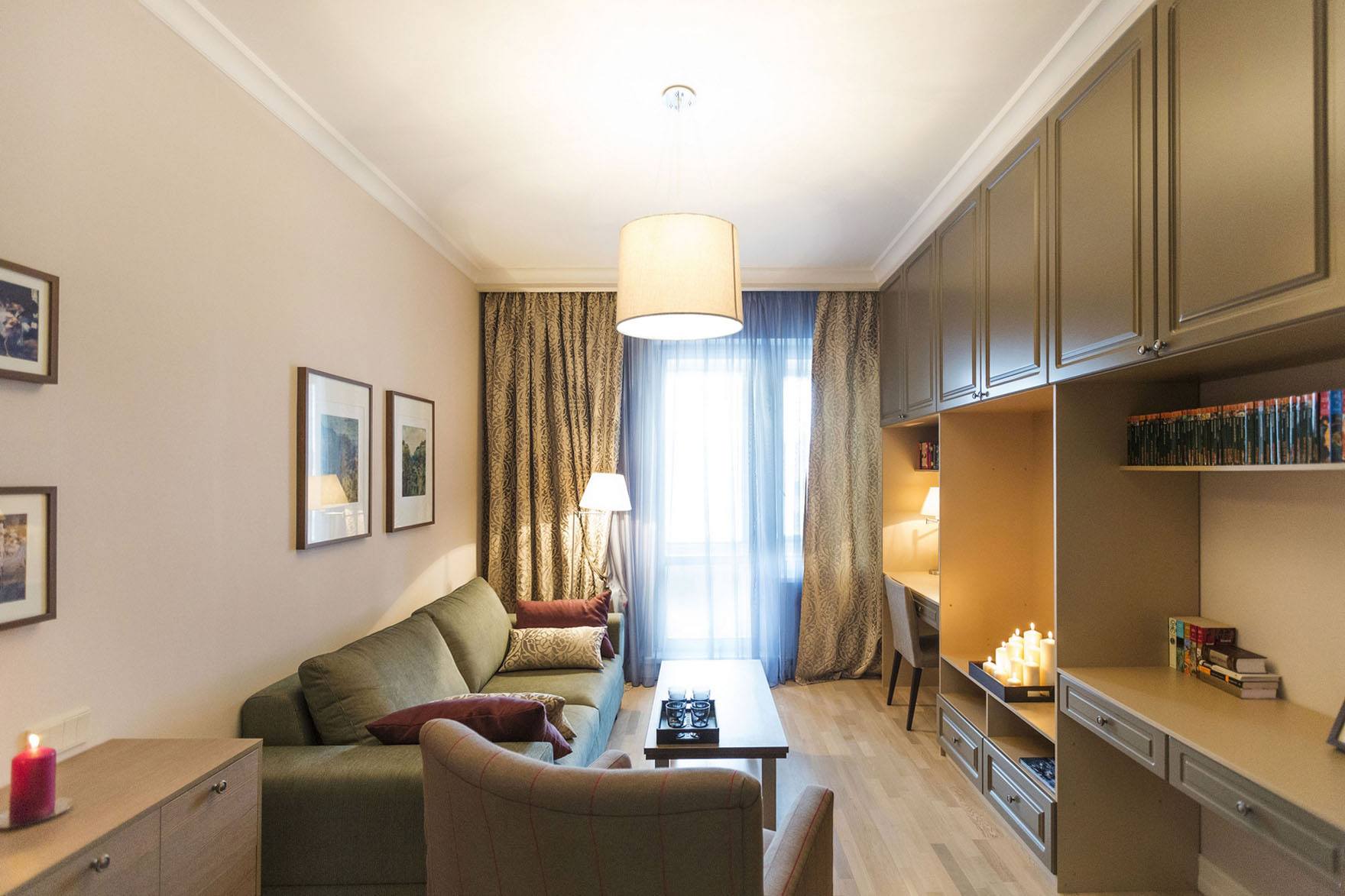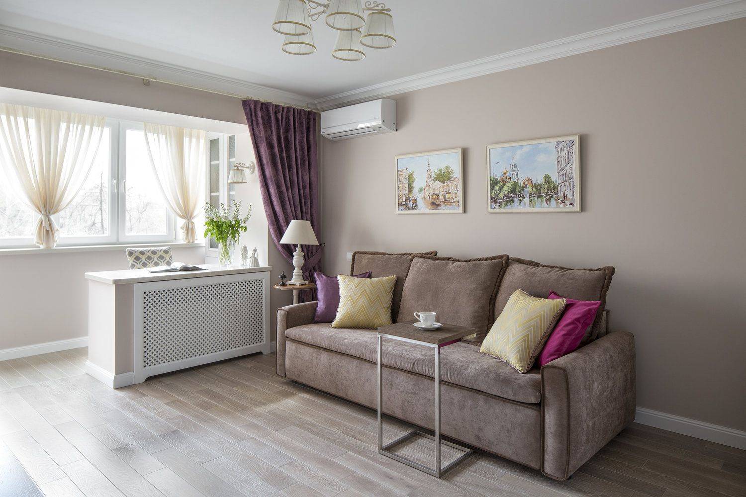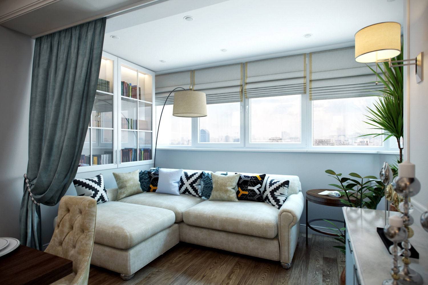 При достаточных размерах лоджии, ее можно превратить в самостоятельное помещение или за счет демонтажа перегородки, совместить с примыкающей комнатой.