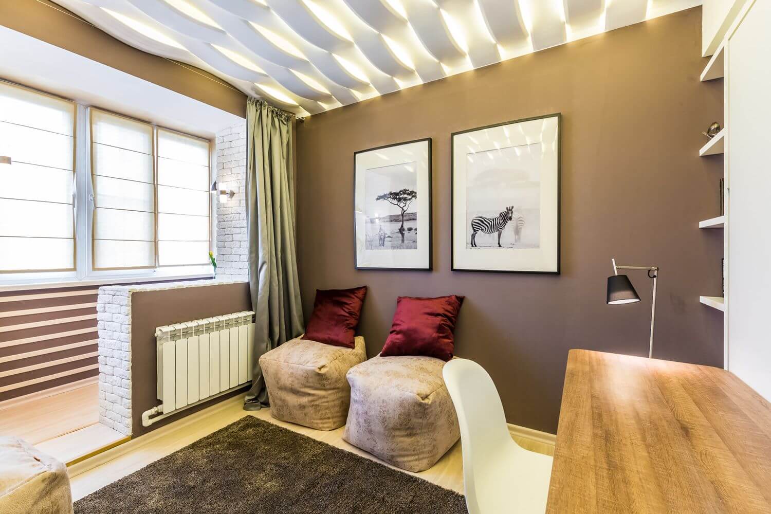 Оригинальный дизайн балкона и интерьер лоджии может превратить эту часть квартиры в уютную спальню, небольшую детскую, рабочий кабинет, зону отдыха и даже кухню.