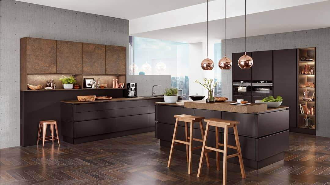 Чаще всего черно-коричневая кухня ассоциируется с деревом, поэтому идеально, если мебель будет выполнена из массива. Для производства мебели применяются различные пропитки и составы, которые делают дерево влагостойким и предотвращают его деформирование от повышенных температур.