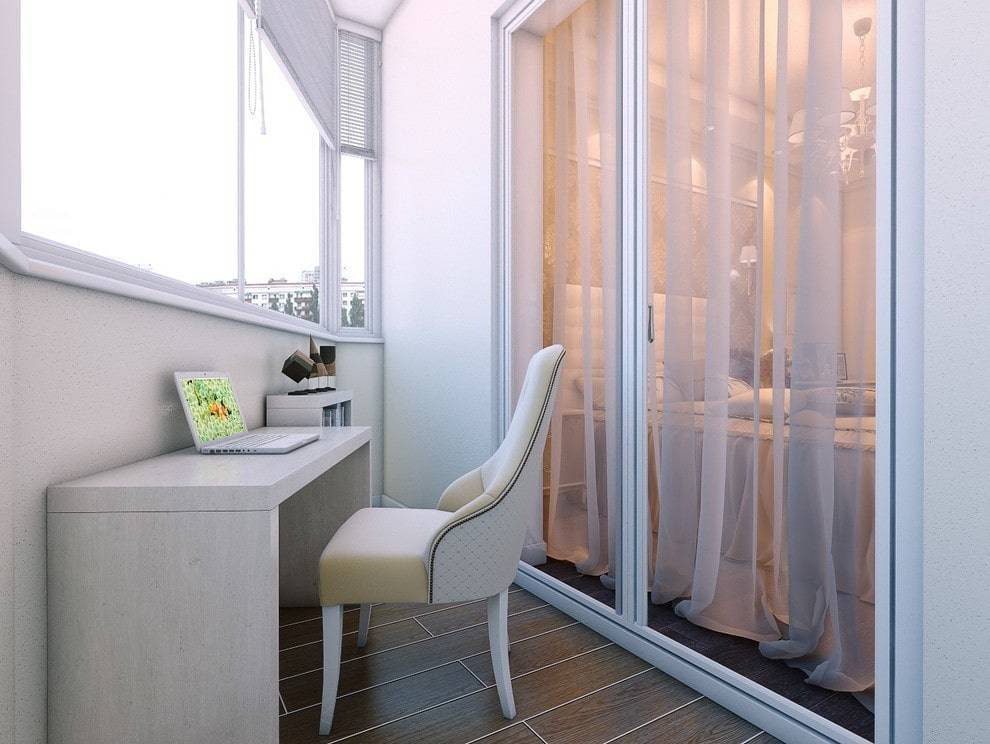 Дизайн лоджий и балконов, фото рабочего кабинета, обустроенного в трехметровом помещении