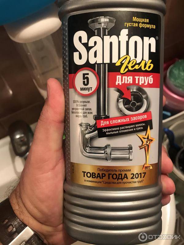 Средство выпускают в виде гранул и геля. Последний по консистенции густой, способен проникнуть в трубу, даже если у вас застой воды в раковине, и поможет избавиться от засоров через 20 минут. Для этого вылейте в трубу половину емкости, подождите столько времени, сколько указано на упаковке, а после промойте все большим напором горячей воды. Следует помнить о том, что средство едкое и может вызвать ожоги кожных покровов, если вы их заранее не защитите.