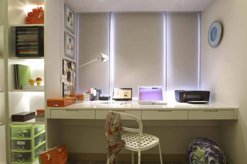 Кроме искусственного освещения необходимо естественное, поэтому стол размещают около окна. Лучше всего получается организовать учебное пространство с угловой моделью. Хорошим вариантом также может стать расположение мебели перед окном. Поверхность стола можно совместить с подоконником, что позволит сэкономить место.
