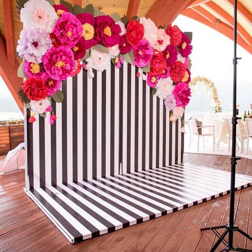 Вариаций для фотозоны на день рождения своими руками большое количество. Празднично и эффектно будут смотреться развешенные помпоны, китайские фонари, шары, звёзды.