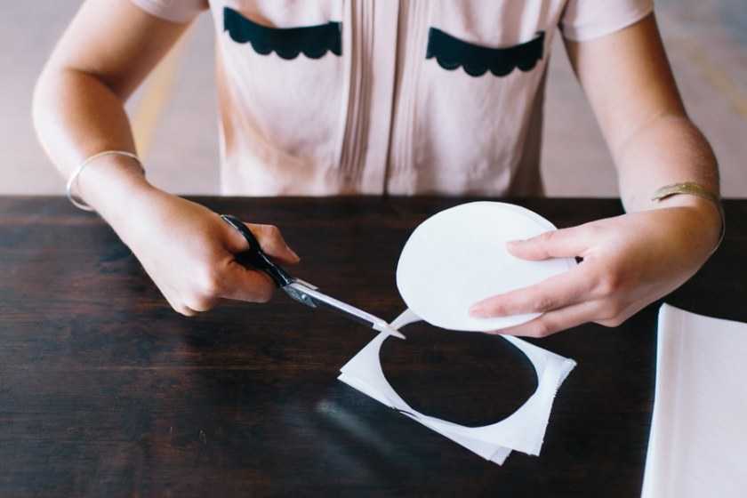 Для изготовления потребуются: атласная лента (от 10 метров), пергаментная бумага, игла с ниткой, ножницы и клей. На первом шаге вырезаются бумажные полукруги. Затем они сворачиваются конусом и закрепляются клеем. После чего готовые заготовки нанизываются на нить на расстоянии около двух сантиметров друг от друга.