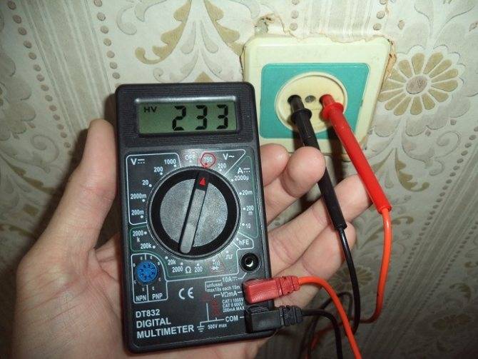 В быту, как правило, используются простые мультиметры. Они способны показать наличие напряжения в сети и его значение. Намного безопаснее использовать для определения фазы именно эти приборы, так как их щупы имеют диэлектрическую рукоятку. Принцип определения такой же, как и в случае с патроном — достаточно один щуп приложить к земляному контакту розетки, а второй накладывать на один из двух контактов розетки.