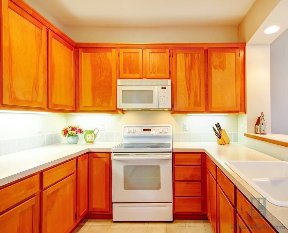 Чтобы такая техника, как телевизор и микроволновая печь, которые являются неотъемлемой частью любой кухни, не занимали место на поверхности шкафов, их устанавливают на угловых кронштейнах, или же монтируют в верхнюю часть кухонного уголка по типу встраиваемой техники.