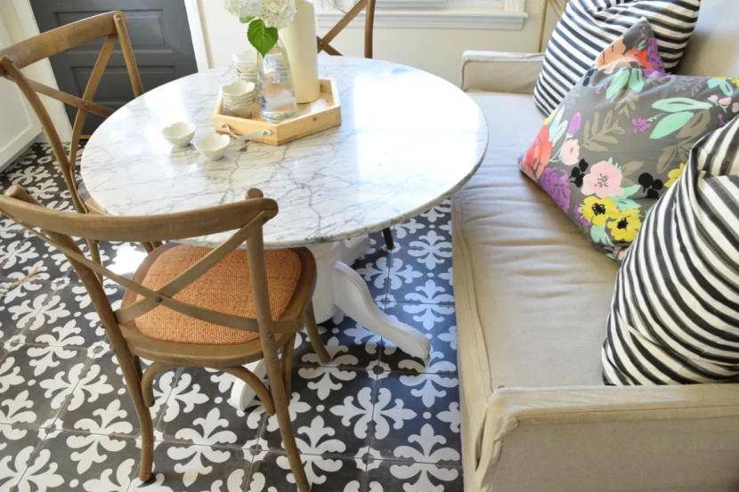 Стол и стулья – основные компоненты столовой зоны на кухне; в отдельных случаях стулья может заменить (или дополнить) диван, кресло, лавка или кушетка. Чтобы обеденная группа смотрелась гармонично, она должна соответствовать по стилю остальной обстановке. Тон задаёт стол и материал его столешницы; популярны следующие варианты:
